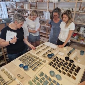 We vertrekken telkens vanuit de theorie en maken heel veel testjes. We bakken de testjes, kijken hoe we verder kunnen optimaliseren en bereiken op die manier hele mooie resultaten. De recepten en testjes zijn van iedereen en op die manier leggen we samen een gigantisch logboek aan. Na een glazuurcollege ga je naar huis met een logboek vol foto’s en recepten voor mooie glazuren!
